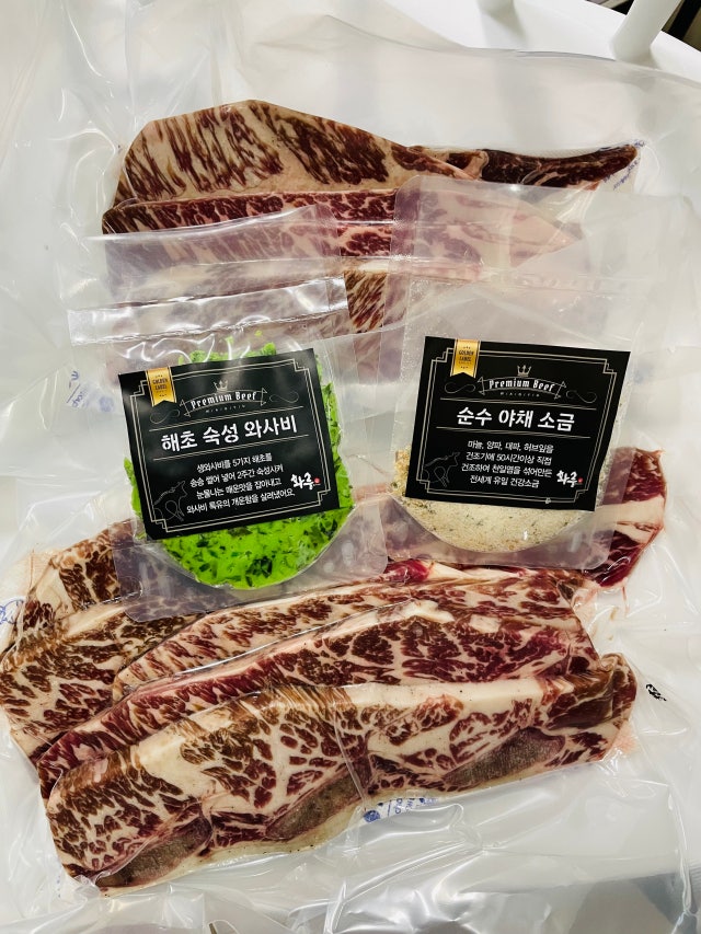벌써 몇번째 주문인지 모르겠네요ㅎㅎ 고기도 고기지만 저 와사비와 소금이 진짜 대박입니다 메리 크리스마스 가족 식사용으로 구입했습니다 오늘도 맛있게 잘 먹겠습니다~