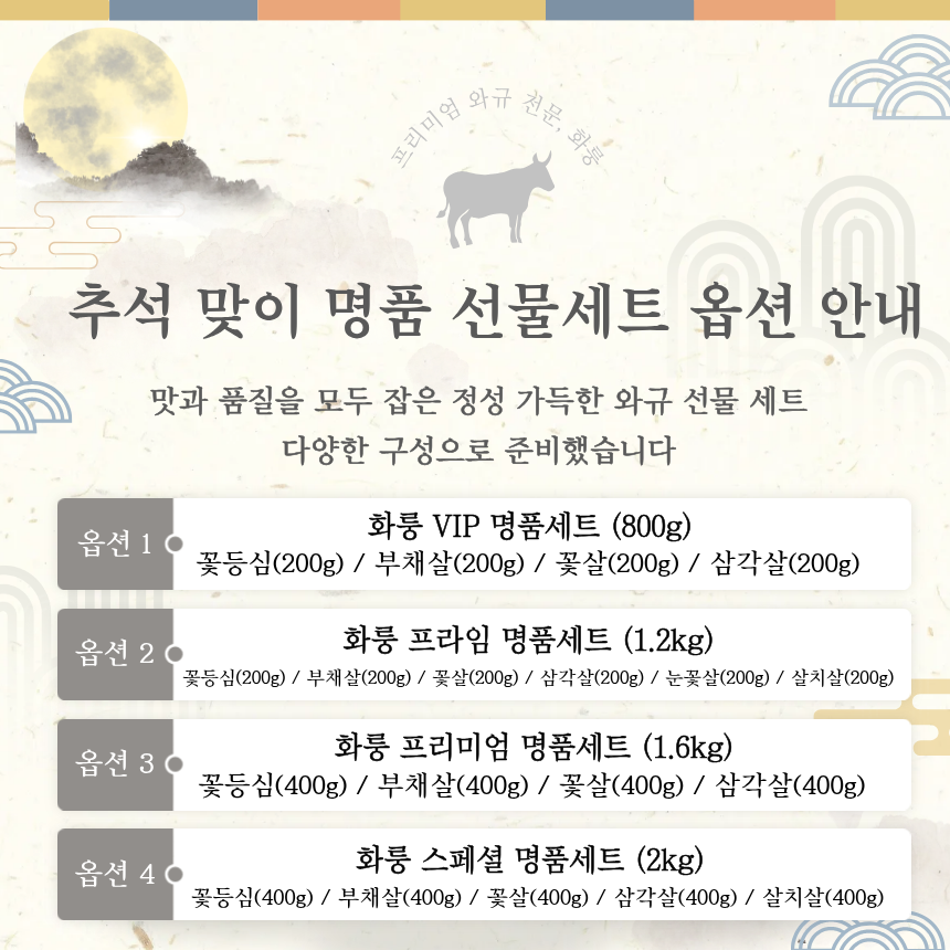 화룽 프라임 명품 선물세트 1.2KG세트입니다. 호주산 프리미엄 와규(MB9고마블) 최상위등급입니다.